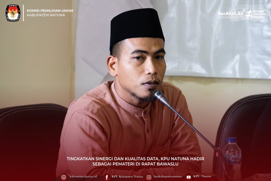 Natuna - Komisi Pemilihan Umum (KPU) Kabupaten Natuna terus berkomitmen untuk menjaga sinergi yang konstruktif dengan Badan Pengawas Pemilu (Bawaslu) Kab. Natuna. Komitmen ini diwujudkan dengan keikutsertaan Anggota KPU Kabupaten Natuna, Bahrul Amin, S.E., sebagai pemateri utama dalam kegiatan “Rapat Hasil Pengawasan Pemutakhiran Data Pemilih Berkelanjutan Kabupaten Natuna” yang digelar oleh Bawaslu setempat pada Senin, 25 November 2025. Kegiatan yang berlangsung secara tertib ini menjadi forum strategis untuk menyamakan persepsi dan evaluasi terkait proses berkelanjutan dari pemutakhiran data pemilih. Kehadiran KPU dalam kapasitasnya sebagai penyelenggara pemilu dinilai sangat penting untuk memberikan penjelasan mendetail dari sisi teknis dan operasional. Dalam pemaparannya, Bahrul Amin menyampaikan perkembangan, capaian, serta tantangan dalam tahapan pemutakhiran data pemilih yang sedang berjalan. Ia menekankan bahwa KPU Natuna senantiasa bekerja dengan berpedoman pada asas akurasi dan transparansi untuk memastikan hak pilih setiap warga negara terpenuhi. “Pemutakhiran data pemilih adalah proses yang dinamis dan krusial sebagai fondasi penyelenggaraan pemilu yang berkualitas. Sinergi dengan Bawaslu melalui forum seperti ini sangat kami apresiasi, karena pengawasan yang dilakukan turut mendorong kami untuk terus meningkatkan akurasi dan integritas data,” ujar Bahrul Amin di hadapan para peserta rapat. Keterbukaan dan kolaborasi antara penyelenggara dan pengawas pemilu ini diharapkan dapat meminimalisir potensi masalah di kemudian hari. Dengan komunikasi yang intensif, setiap temuan pengawasan dari Bawaslu dapat ditindaklanjuti secara cepat dan tepat oleh KPU. Kegiatan ini tidak hanya memperkuat fungsi pengawasan tetapi juga membangun kepercayaan publik terhadap proses demokrasi di Kabupaten Natuna. KPU Natuna berharap kolaborasi semacam ini akan terus berlanjut dalam setiap tahapan pemilu mendatang, demi terwujudnya pemilu yang jujur, adil, dan berkualitas. ....
