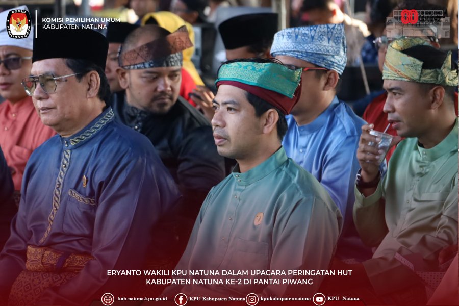 Natuna – Komisi Pemilihan Umum (KPU) Kabupaten Natuna turut berpartisipasi dalam Upacara Peringatan Hari Ulang Tahun (HUT) Kabupaten Natuna ke-2 yang digelar di Pantai Piwang. Pada kesempatan ini, Eryanto, Anggota KPU Natuna, yang hadir dalam rangkaian upacara sebagai bentuk dukungan dan kebanggaan terhadap perkembangan daerah.