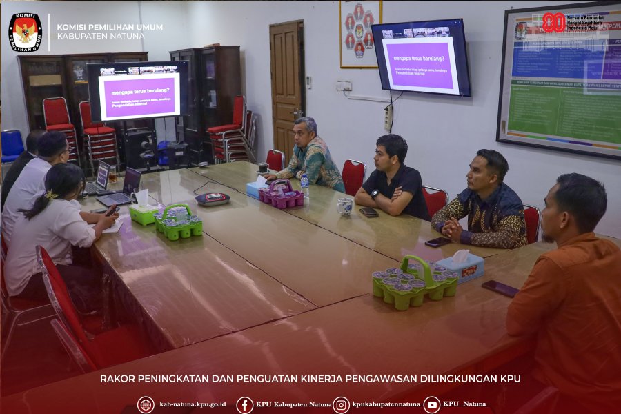 Natuna - KPU Kabupaten Natuna mengikuti kegiatan rapat koordinasi (rakor) dalam rangka peningkatan dan penguatan kinerja pengawasan di lingkungan KPU, KPU Provinsi, serta KPU Kabupaten/Kota secara daring, pada Selasa, (21/10/2025) di Ruang Rapat KPU Natuna.