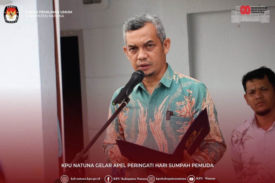 Natuna - Komisi Pemilihan Umum (KPU) Kabupaten Natuna menyelenggarakan apel dalam rangka memperingati Hari Sumpah Pemuda. Acara yang berlangsung pada selasa, 28 oktober 2025 tersebut dipimpin langsung oleh Ketua KPU Natuna, Kusnaidi, yang bertindak selaku pembina upacara. Apel ini digelar sebagai bentuk refleksi dan penghormatan terhadap semangat persatuan para pemuda tahun 1928.