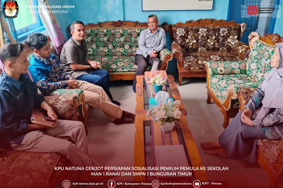 NATUNA – Guna mempersiapkan generasi muda yang cerdas dan berpartisipasi aktif dalam pesta demokrasi, Ketua Komisi Pemilihan Umum (KPU) Kabupaten Natuna beserta jajaran melakukan kunjungan koordinasi ke MAN 1 Ranai dan SMPN 1 Bunguran Timur pada Kamis, 21 Agustus 2025.